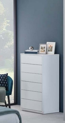 As suas seis gavetas amplas são equipadas com o sistema tic-tac (push-to-open), permitindo abertura e fecho suaves e silenciosos, sem necessidade de puxadores. O resultado é uma peça com um visual limpo e minimalista, perfeita para quartos elegantes e contemporâneos.